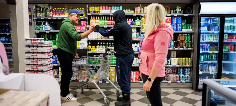 I en butikk kjøpes lønna for arbeidet: Lakrisis, wienerbrød og vørterøl.