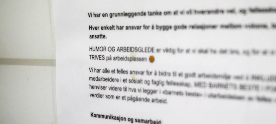 Alle ansatte har signert på en «hverdagskontakt», blant annet om hvordan man gir kritikk og tolker andre.