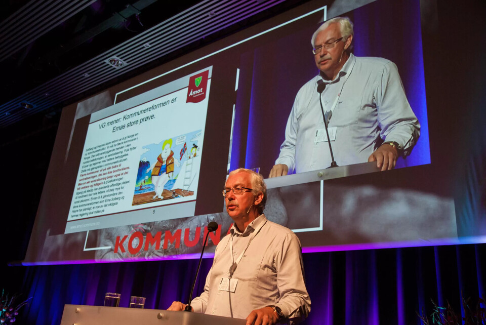 Narud er leder av Lokalsamfunnsforeningen og ordfører i Åmot kommune. På LO Kommunes konferanse denne uka, Kommunal 2016, gikk Narud gjennom status for kommunereformen, fra et ordførerperspektiv.