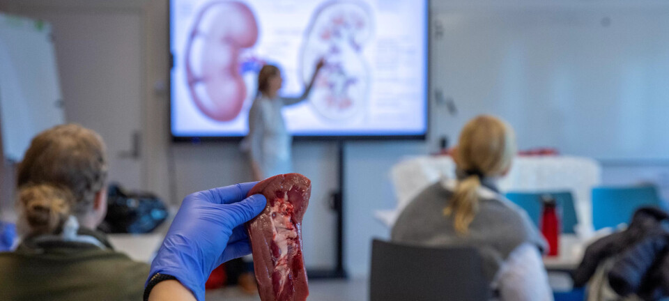 Studentene skjærer i nyrene for å se hvordan de er bygd opp.