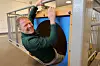 LEIKEN: Sp-politikar Sibjørn Gjelsvik var på barnehagebesøk 4. september. Gjelsvik som er småbarnsfar viste korleis det skal gjerast i rusje-tunnellen.Foto: Øystein Windstad