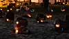 Allehelgensaften går Thomas Kristiansen rundt og tenner gravlys på gravene der pårørende betaler en liten sum for å få slike ting gjort. Hvis det ikke er tent lys ved minnesteinen for de falne under andre verdenskrig like utenfor gravplassen, tenner han lys også der.Foto: Per Flakstad