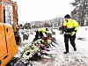 Jon Ingvald Sjødal sørger for at veien ned til graven er nybrøytet. Nordre Follo er ikke noen snørik kommune. Men når snøen først kommer, er det viktig å brøyte gangveiene og veien fram til graven der følget skal går ut med kisten. I tillegg er det viktig å strø jevnlig. Selv om det er strødd fra før, strøs det gjerne litt ekstra hvis det skulle komme et tynt snølag etterpå slik at det synes og folk føler seg trygge når de går.Foto: Per Flakstad