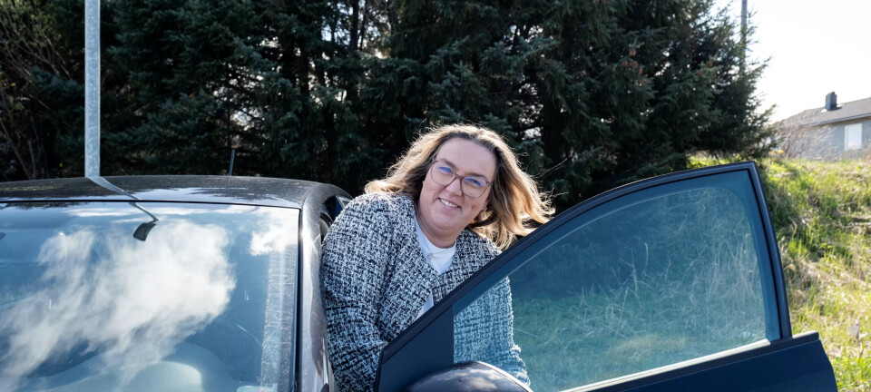 Hege Vikaskag slenger seg inn i sin dieseldrevne, svarte Polo.