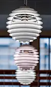 I taket henger Louis Poulsens Louvre-lamper - lamper som i dag koster rundt 78.000 kroner per stykk ny. Da disse skulle byttes ut med lysstoffrør, reagerte de ansatte. En midlertidig fredning ledet til at Riksantikvaren totalfredet bygget i 2019. I dag regnes det som et av de fremste eksemplene på skandinavisk modernisme i Norge.
