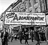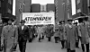 Oslo 1958 1. mai-feiring. 1. mai-toget på Karl Johans gate. Parole mot atomvåpen og prøver med atombomber, og Nei til atomvåpen i Vest-Tyskland. NTB arkivfoto Jan Stage / NTB