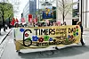 1999 Første mai: 1.mai-toget i Oslo på vei opp Karl Johansgate med transparenter. Foto: Morten Holm / NTB