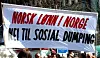2005 1.mai i Oslo; Plakater. Norsk lønn i Norge, nei til sosial dumping. Slagord. Foto: Berit Keilen / NTB