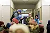 I korridoren står ei lang rekke med andre- til fjerdeklassinger med skisko på føttene. Alle som skal være med, må registrere seg hos kryssevakt Kari Marie Lian.