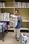 En vanlig arbeidsdag starter med at hun ser gjennom skittentøyet, som er levert fra kjøkkenet, og sorterer det i forhold til hvor skittent det er.