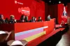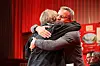 Rundt 500 par hender gjev han ein lang og kraftig applaus i det han blir omfavna av avtroppande Fagforbundet-leiar Mette Nord.