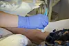 Forsiktige fingre fjerner plastre fra hud som har levd lenge.