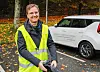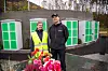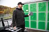 Han er blant dem som har ansvaret for å sette på plass de klargjorte grønne platene.